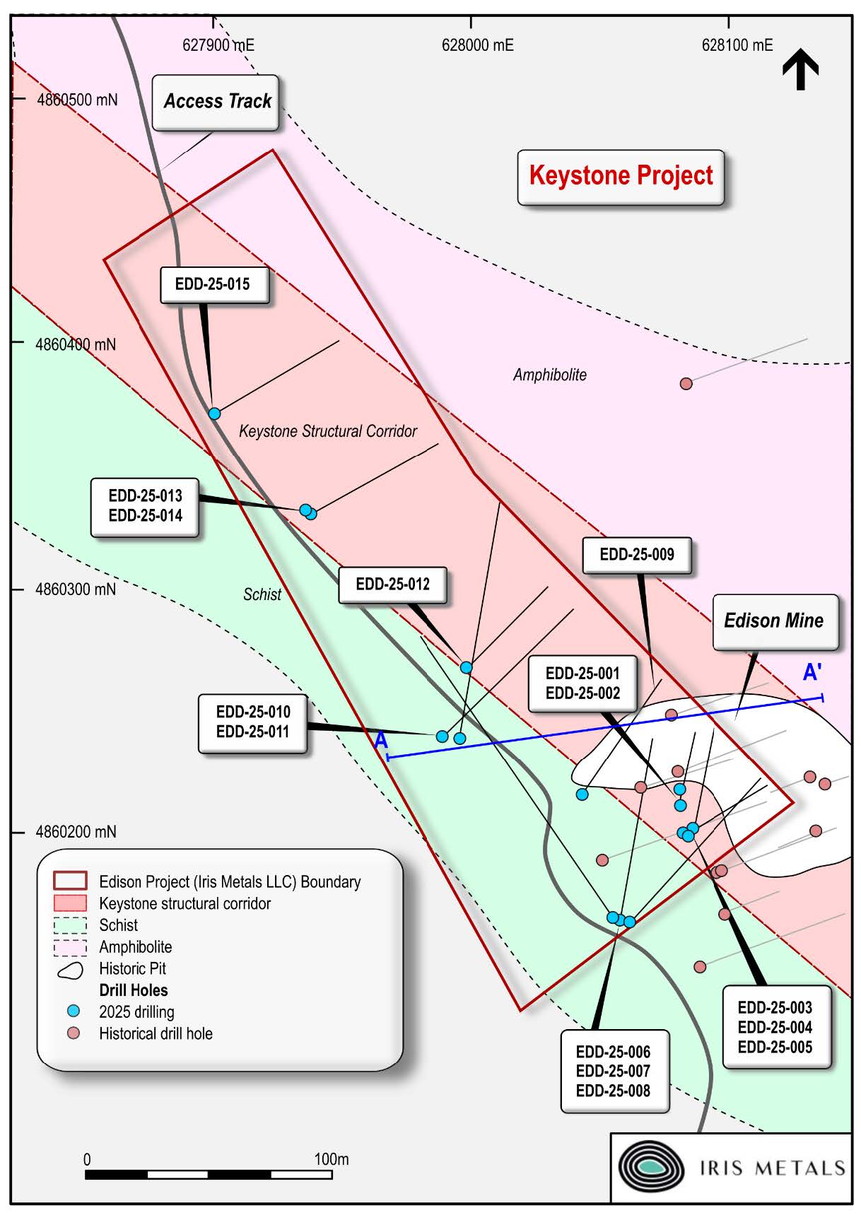 The Edison Project, located near Keystone, includes the historic Edison Mine, once owned by Thomas Edison. IRIS Metals plans to begin Phase II drilling later this year to further define resources, with a project study expected to be completed in early 2026.