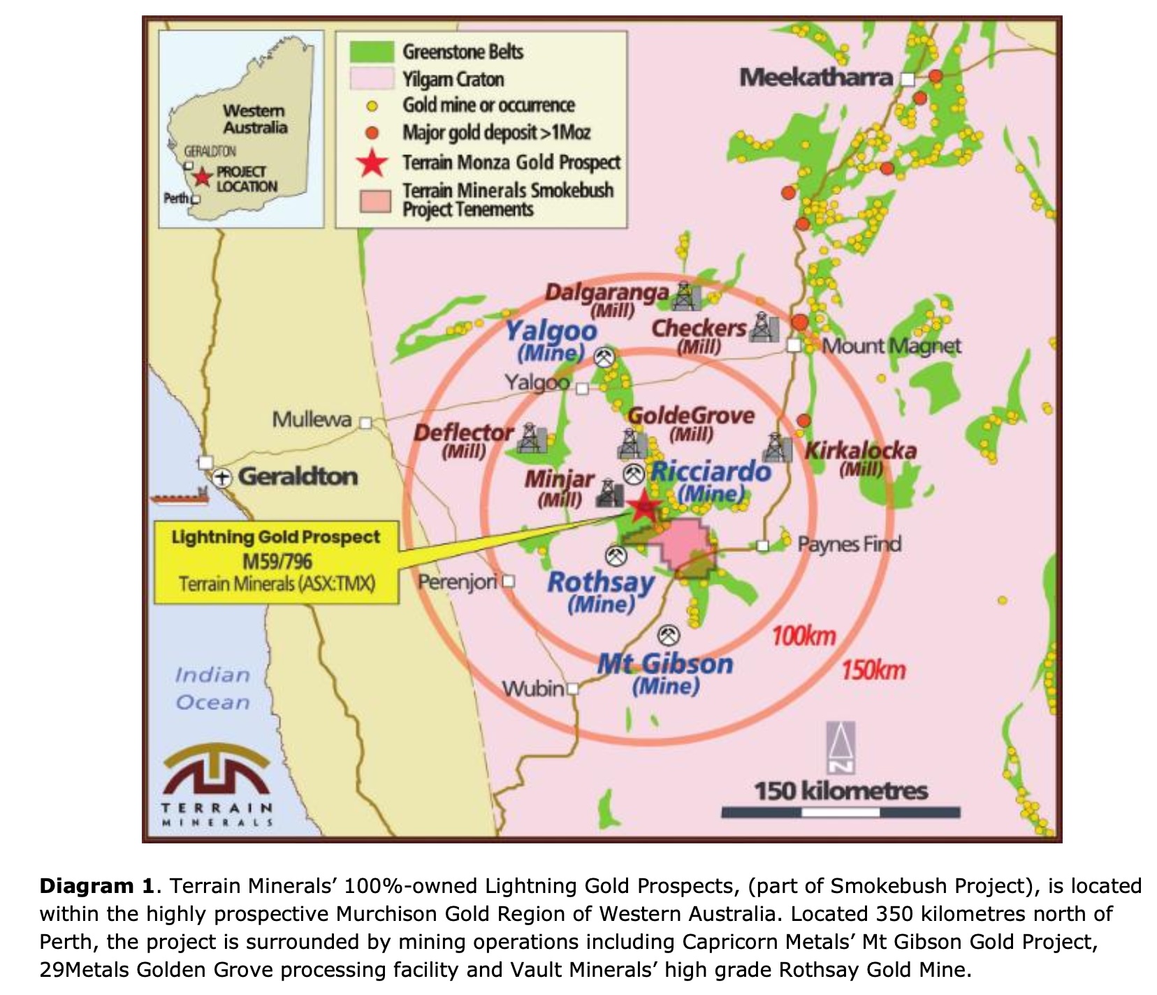 At the heart of the update is the Smokebush Project, located in WA’s Murchison region — a belt already crowded with successful gold operations like Mt Gibson and Rothsay. Terrain’s flagship target here is the Lightning prospect, a geophysics-guided gold-silver discovery that continues to deliver thick, high-grade intercepts.
